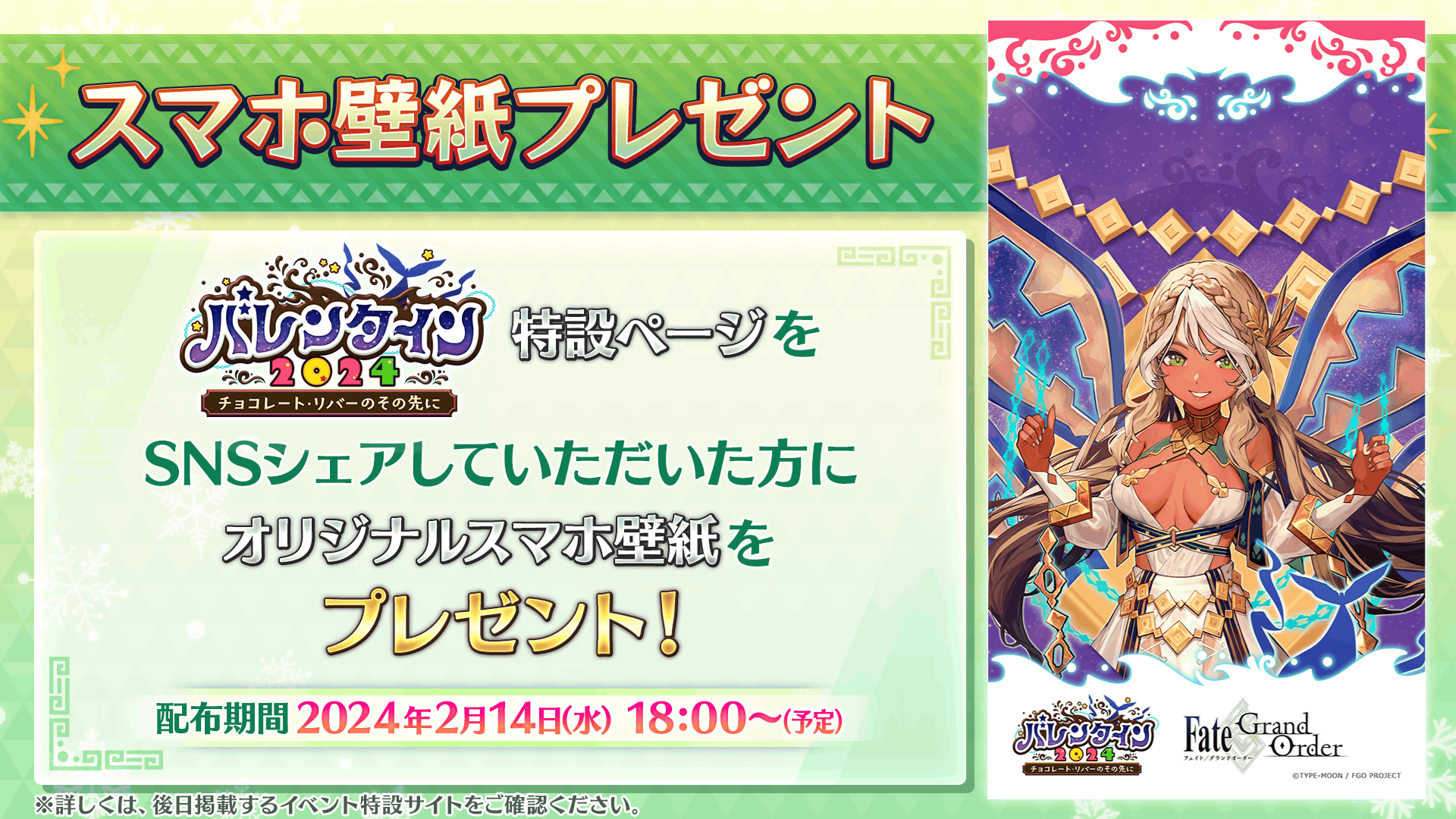 2月14日(水) 18:00より、期間限定イベント「バレンタイン2024 ~チョコレート・リバーのその先に~」の開幕を記念して、特設ページをSNSでシェアしていただいた方にオリジナルスマホ壁紙をプレゼントいたします。