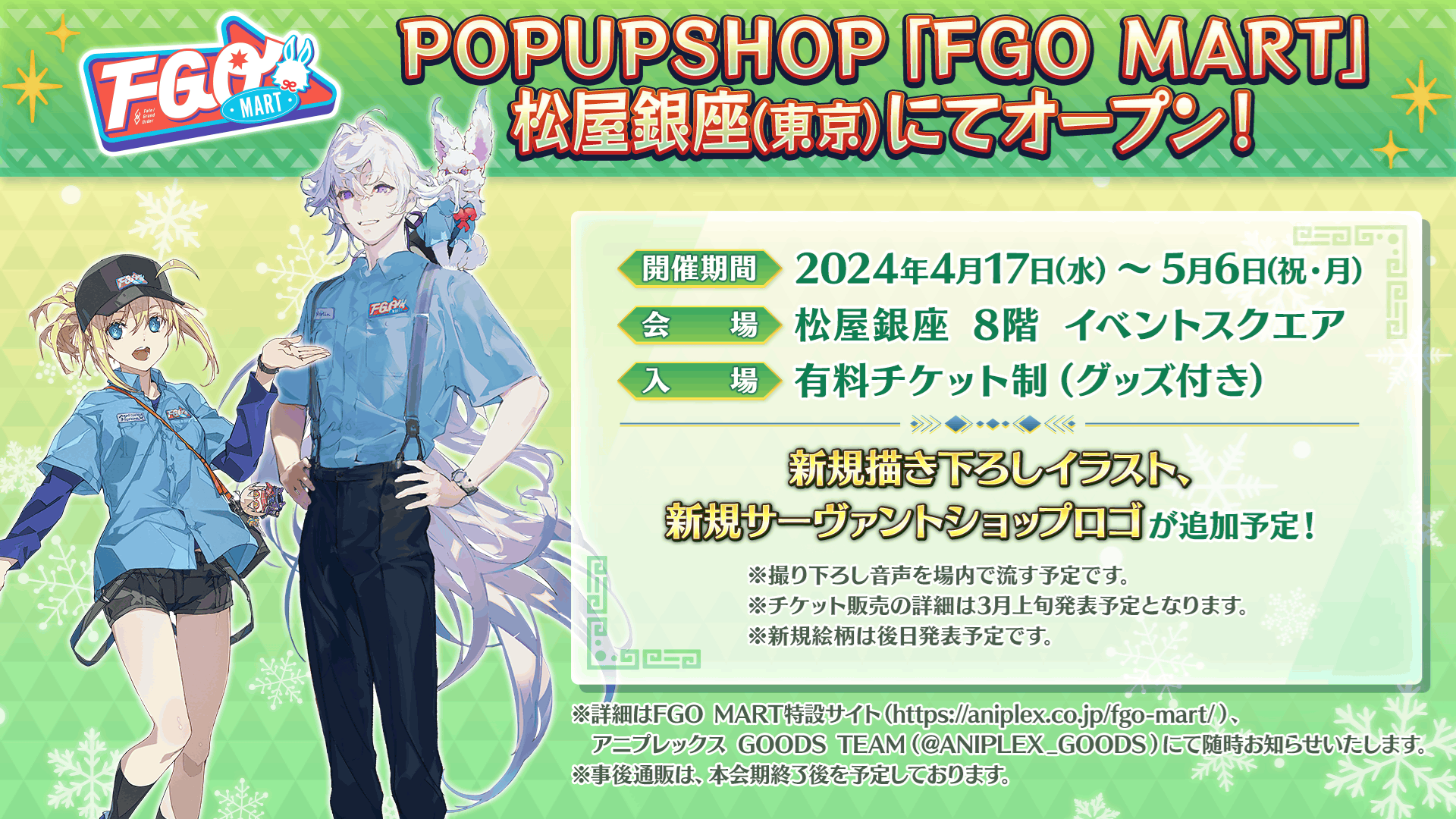 POPUPSHOP「FGO MART」が松屋銀座(東京)にてオープンすることが決定いたしました。