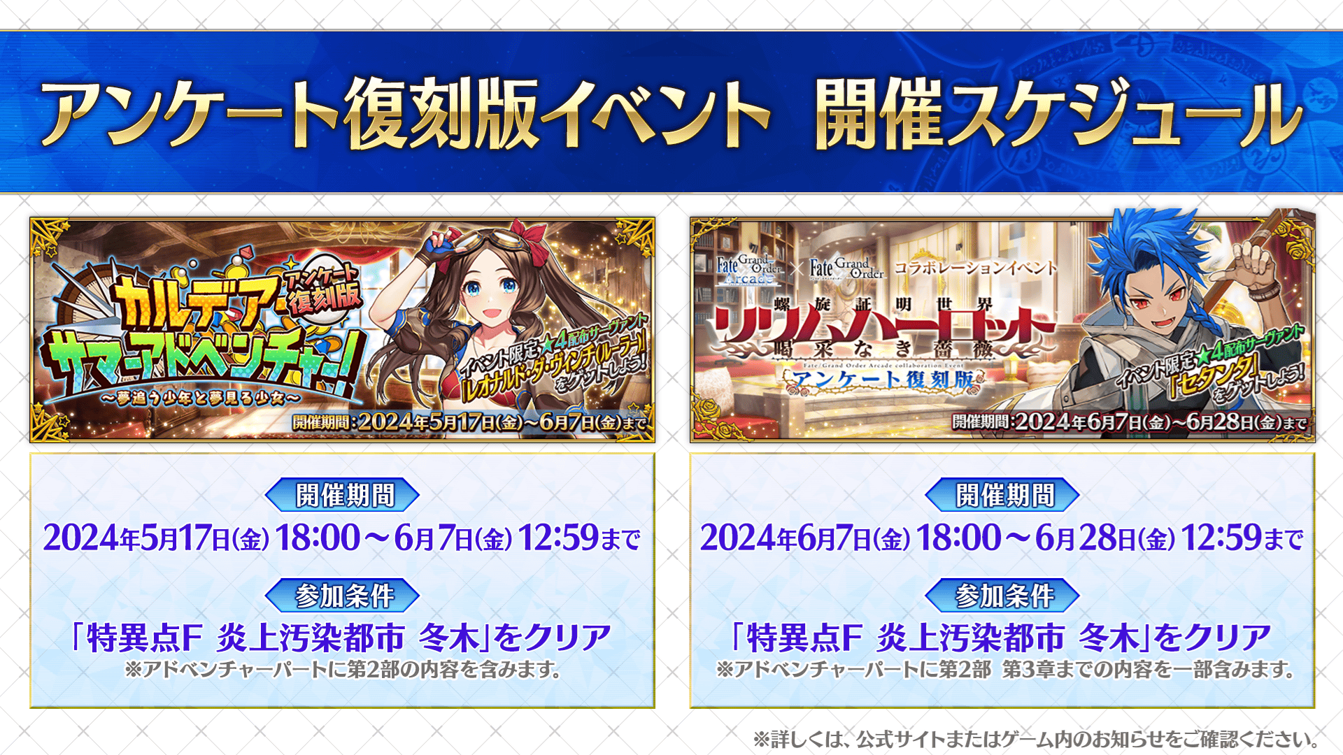期間限定イベント「カルデア・サマーアドベンチャー! ~夢追う少年と夢見る少女~ アンケート復刻版」