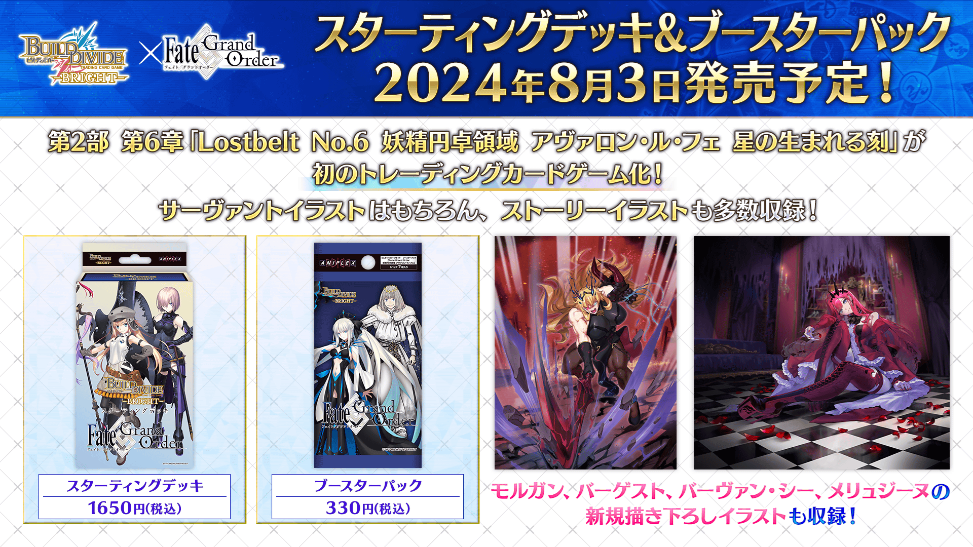 第2部 第6章「Lostbelt No.6 妖精円卓領域 アヴァロン・ル・フェ 星の生まれる刻」のスターティングデッキ&ブースターパックが2024年8月3日(土)に同時発売予定です。