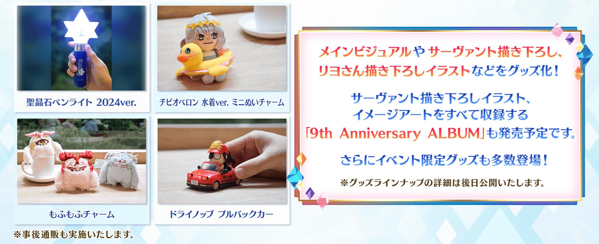 サーヴァント描き下ろしイラスト、イメージアートをすべて収録する「9th Anniversary ALBUM」も発売予定です。