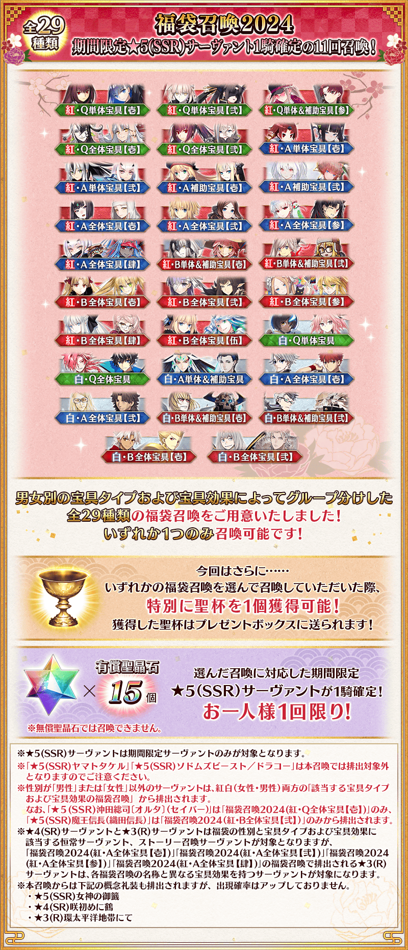 ◆「2024年お正月福袋召喚(男女別×宝具タイプ・効果別)」開催!◆