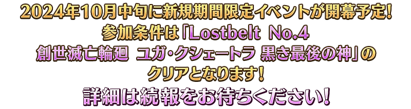 2024年10月中旬に新規期間限定イベントが開幕予定!