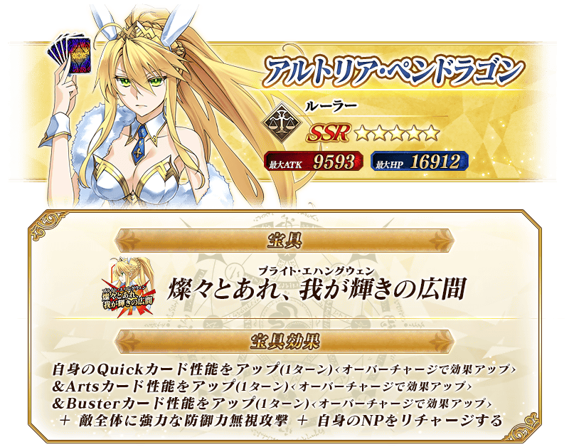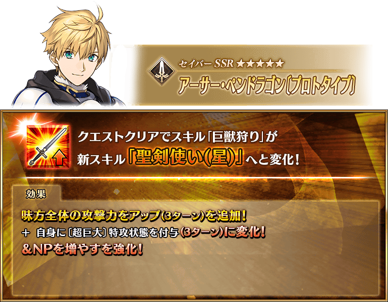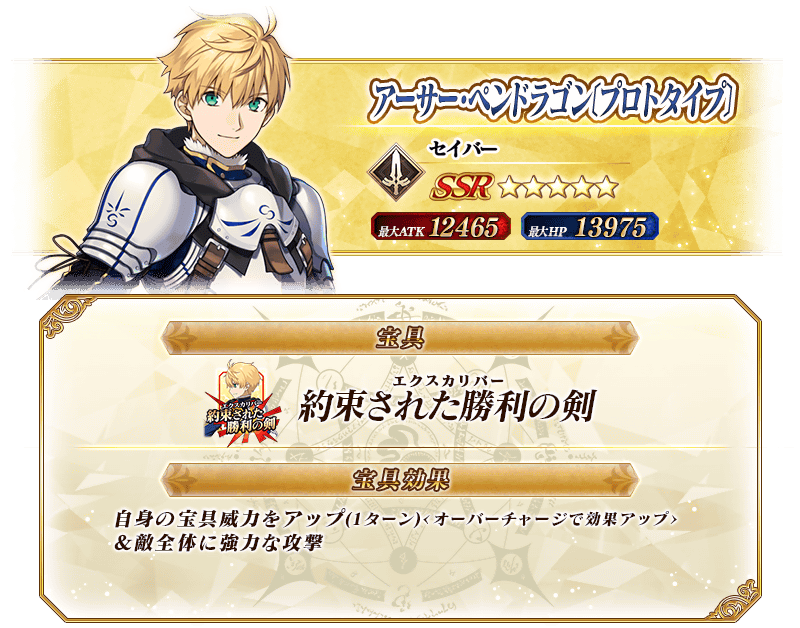 ※上記の「★5(SSR)アーサー・ペンドラゴン〔プロトタイプ〕」のイラストは霊基再臨第2段階のものです。