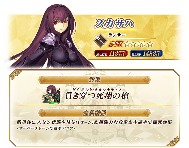 ※上記の「★5(SSR)スカサハ(ランサー)」のイラストは霊基再臨第2段階のものです。