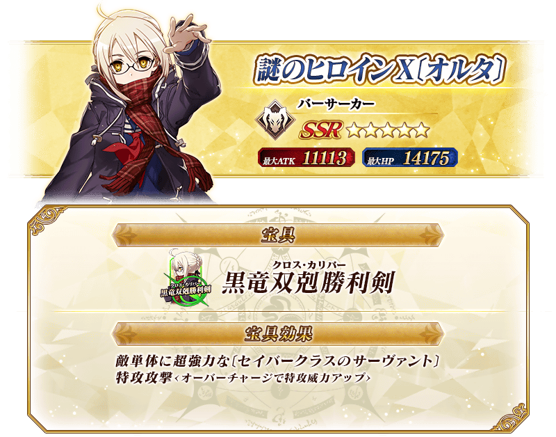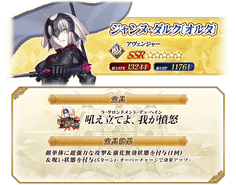 ※上記の「★5(SSR)ジャンヌ・ダルク〔オルタ〕(アヴェンジャー)」のイラストは霊基再臨第2段階のものです。