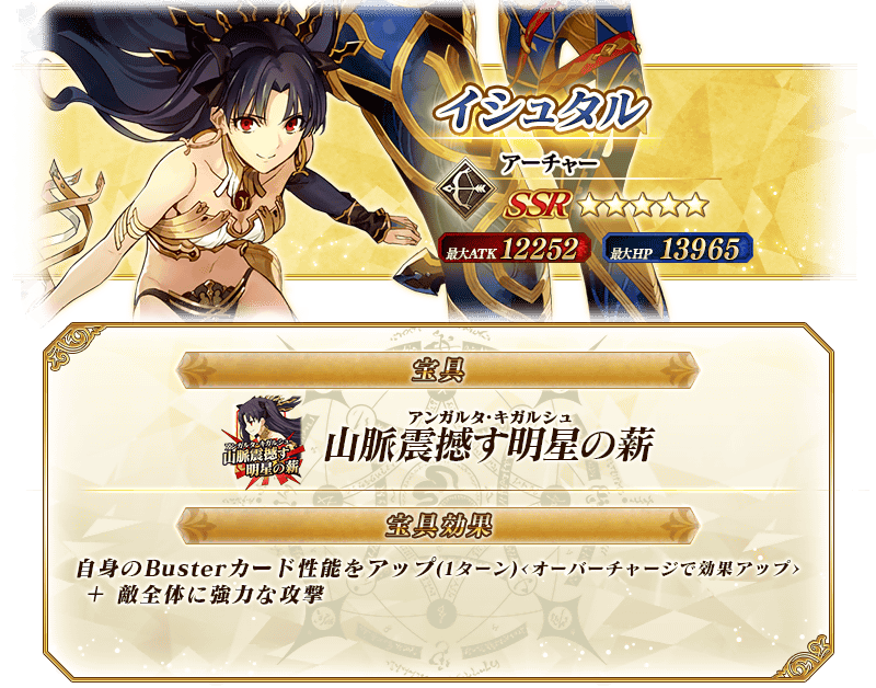 ※上記の「★5(SSR)イシュタル(アーチャー)」のイラストは霊基再臨第2段階のものです。