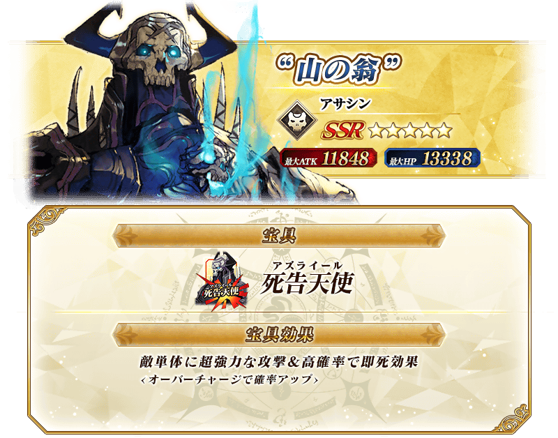 ※上記の「★5(SSR)“山の翁”」のイラストは霊基再臨第2段階のものです。