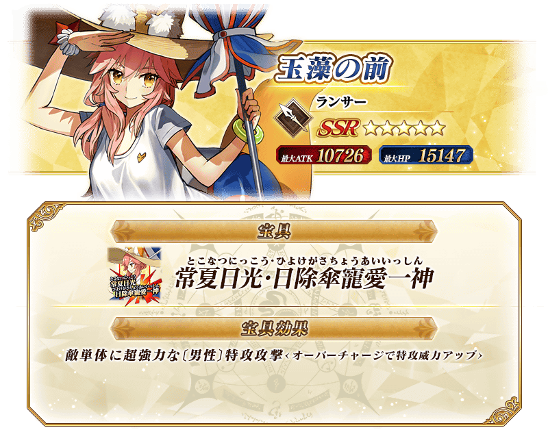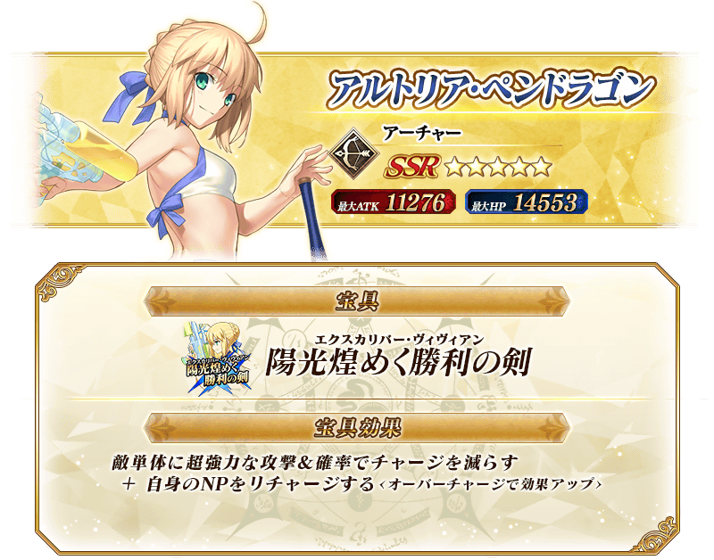 本召喚では、各召喚にてピックアップされている★5(SSR)サーヴァントのみが「確定召喚」による召喚の対象となります。