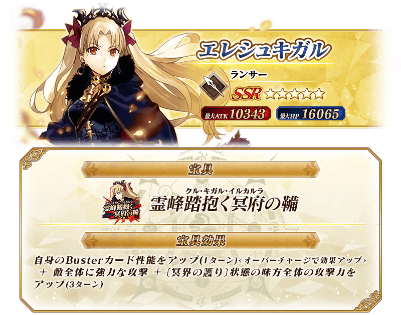 ※上記の「★5(SSR) エレシュキガル(ランサー)」のイラストは霊基再臨第2段階のものです。
