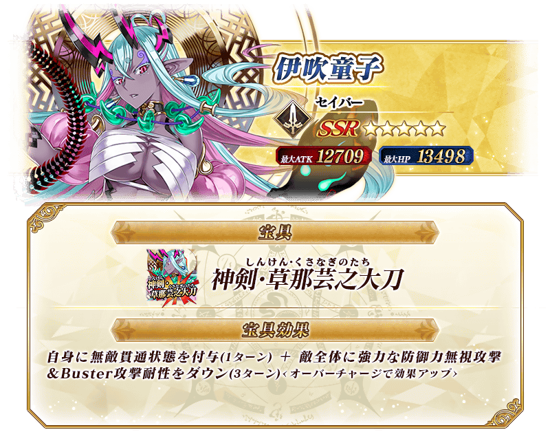 ※上記の「★5(SSR)伊吹童子(セイバー)」のイラストは霊基再臨第3段階のものです。