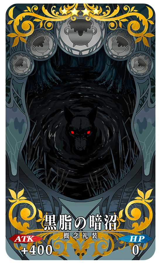 | ソウル・グラトニー | 「第五特異点 北米神話大戦 イ・プルーリバス・ウナム」をクリア | NEW! 概念礼装 ★4(SR)黒脂の暗沼 |