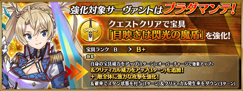※「★5(SSR)シャルルマーニュ」は霊基解放クエストを未クリアの状態で最終再臨させた場合でも強化クエストの開放条件を満たせます。 ※「★5(SSR)ブラダマンテ」は1つ目の強化クエストである「強化クエスト ブラダマンテ」をクリアしておく必要があります。 ※サーヴァント強化クエストにはアドベンチャーパートはありませんのでご注意ください。 ※対象サーヴァントを所持していない場合、クエストは出現しません。 ※クエストに開催期限はありません。