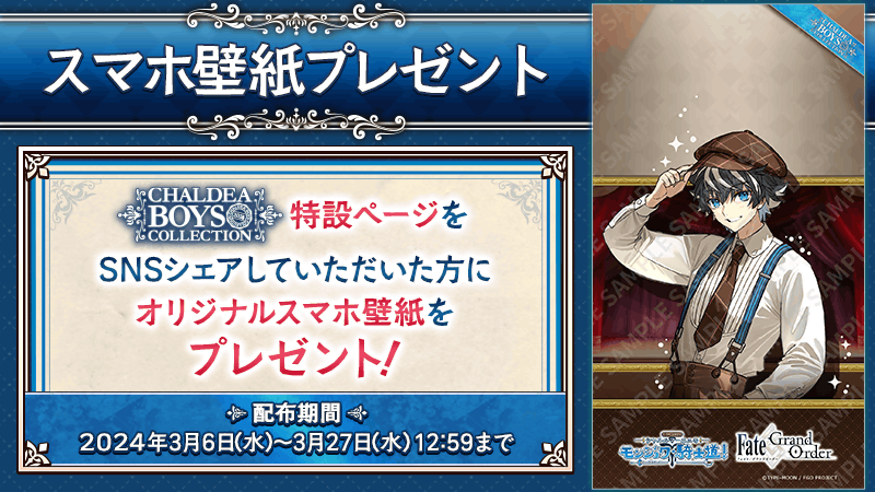 「カルデアボーイズコレクション2024」および期間限定イベント「CBC2024 シャルルマーニュのモンジョワ・騎士道!」の特設ページにて、スマートフォン向け壁紙のプレゼントが実施中!