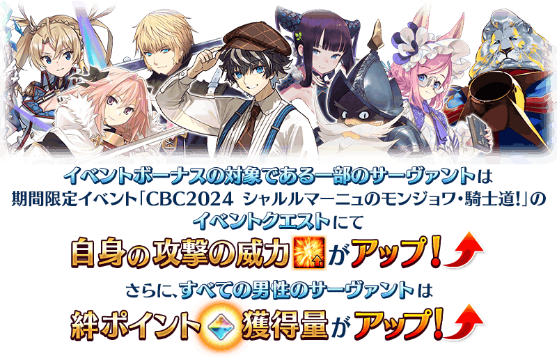 さらに、すべての男性サーヴァントはイベントクエストにおける「絆ポイント獲得量がアップ」の効果を得られます!