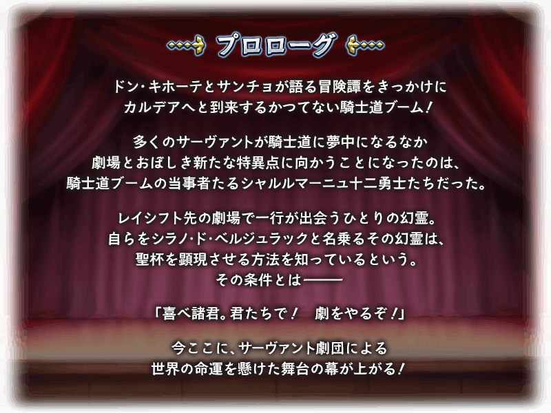 聖杯獲得のため、レイシフトした先の劇場で演劇を成功させよう!
