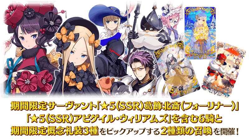本召喚では、各召喚にてピックアップされている★5(SSR)サーヴァントのみが「確定召喚」による召喚の対象となります。