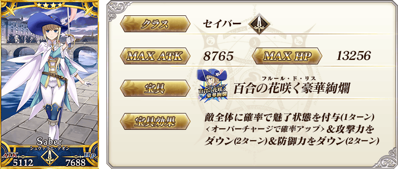 ※上記の「★4(SR)シュヴァリエ・デオン」のセイントグラフは霊基再臨第2段階のものです。