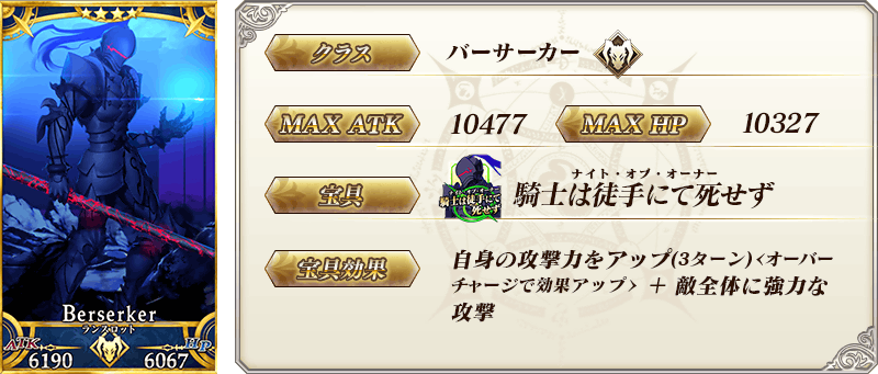 ※上記の「★4(SR)ランスロット(バーサーカー)」のセイントグラフは霊基再臨第2段階のものです。