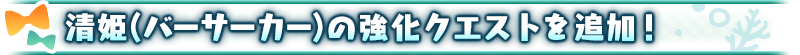 「★3(R)清姫(バーサーカー)」が強化される特別なクエスト「サーヴァント強化クエスト」が、カルデアゲートに恒常的に追加されました。