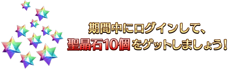 下記の期間中、「Fate/Dream Striker」のリリースを記念して、初回ログイン時に聖晶石10個をプレゼントいたします!