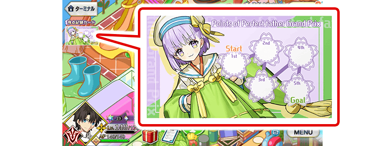 本イベントでは、チェックポイントマスに到達することで開放されるメインクエストをクリアすると、マスターに対する評価点が付けられます。