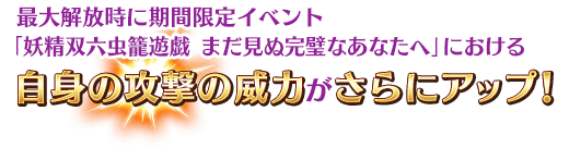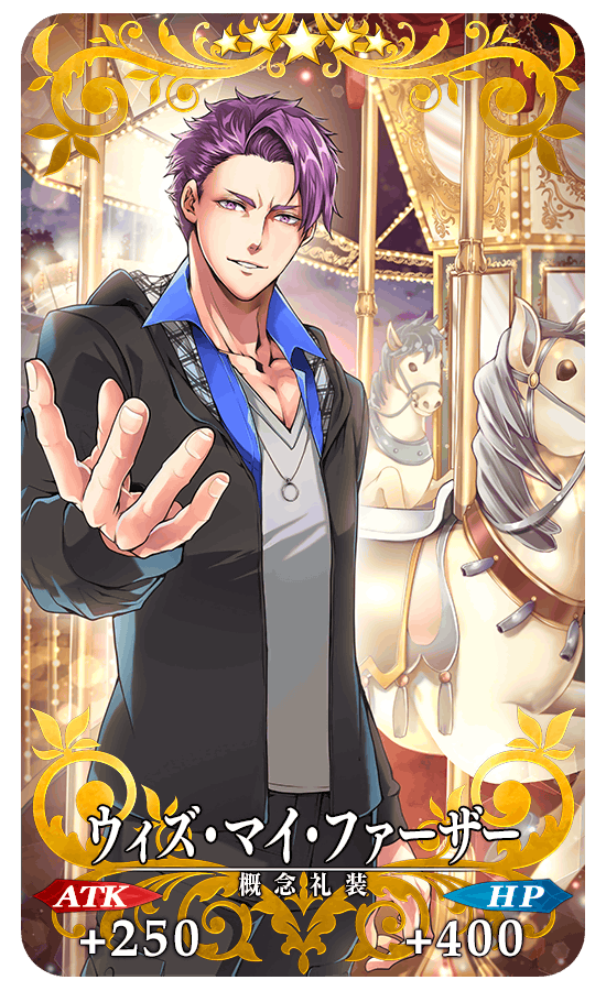 イベントアイテム交換およびイベント限定ミッション報酬で入手できるイベント限定概念礼装「★5(SSR)ウィズ・マイ・ファーザー」を装備することで、期間限定イベント「妖精双六虫籠遊戯 まだ見ぬ完璧なあなたへ」における自身の攻撃の威力がアップします。
