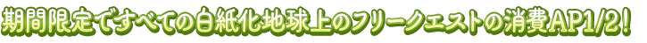 下記の期間中、白紙化地球上におけるフリークエストの消費APが1/2になります!