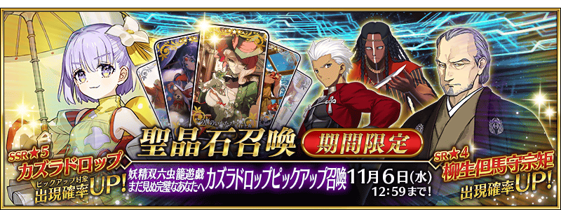 その他にも、期間限定「妖精双六虫籠遊戯 まだ見ぬ完璧なあなたへ カズラドロップピックアップ召喚」などの情報を公開中!