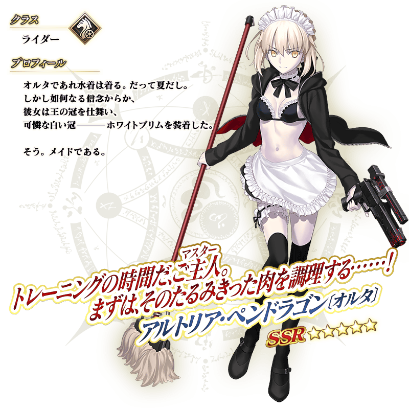 ※上記の「★5(SSR)アルトリア・ペンドラゴン〔オルタ〕(ライダー)」のイラストは霊基再臨第2段階のものです。
