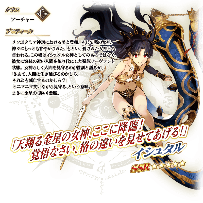 ※上記の「★5(SSR)イシュタル(アーチャー)」のイラストは霊基再臨第2段階のものです。