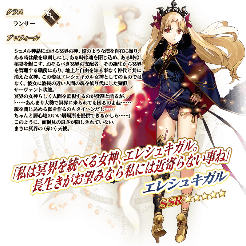 ※上記の「★5(SSR)エレシュキガル」のイラストは霊基再臨第2段階のものです。