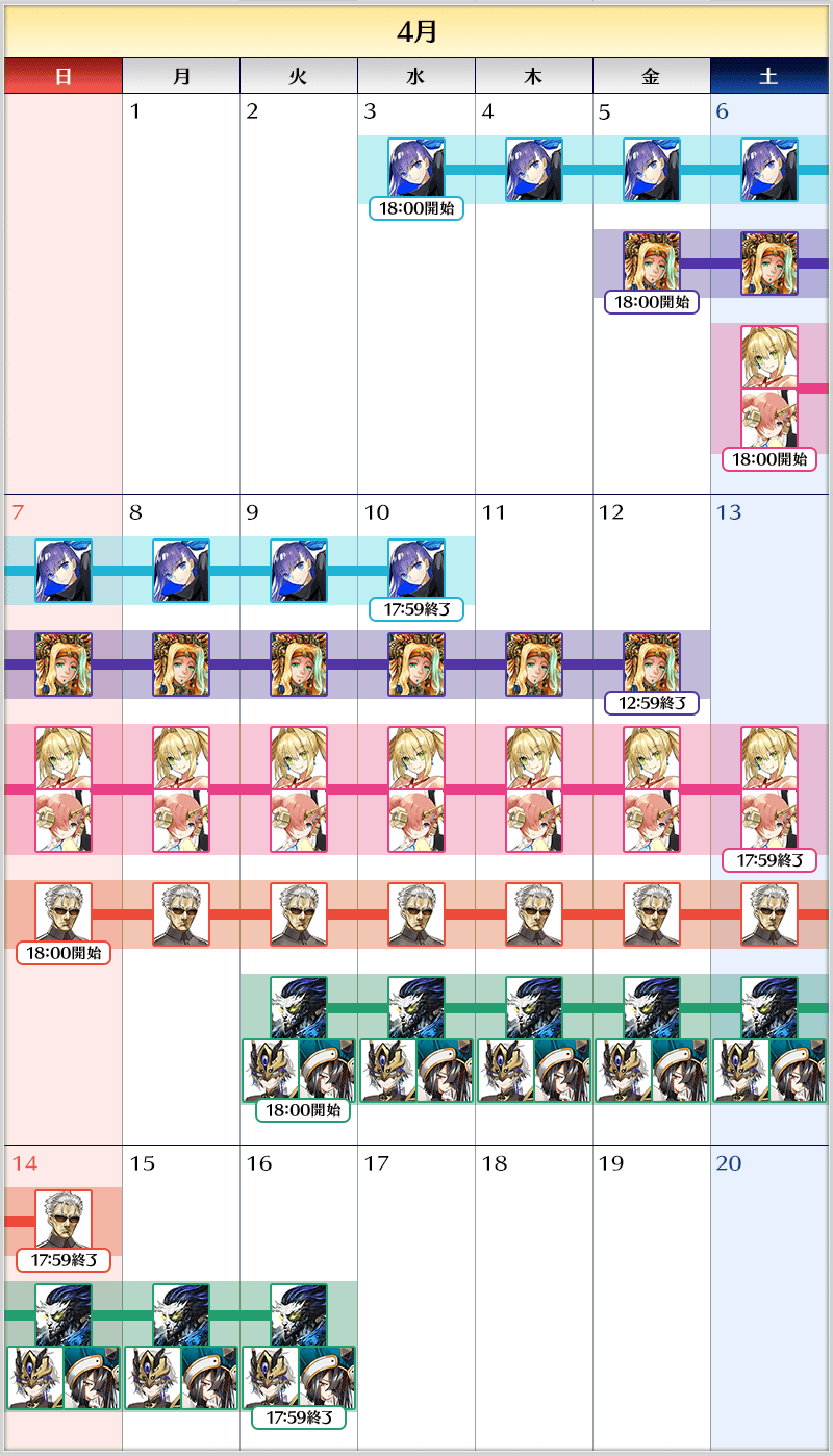 ※それぞれのピックアップ召喚は、開催期間が異なりますのでご注意ください。
