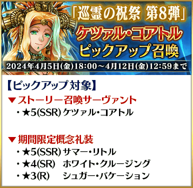 ◆『「巡霊の祝祭 第8弾」ピックアップ召喚』期間◆