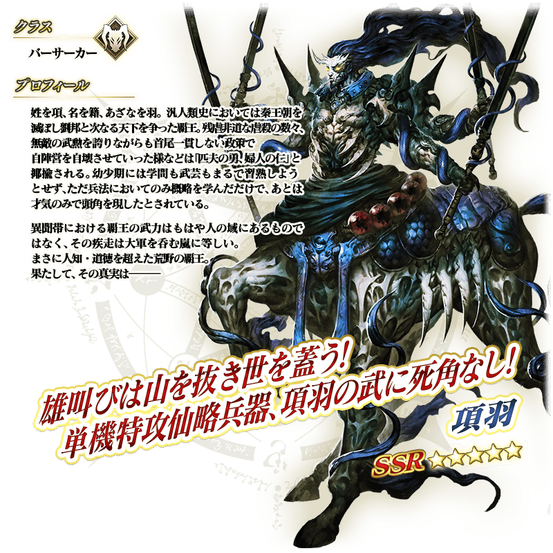 ※上記の「★5(SSR)項羽」のイラストは霊基再臨第2段階のものです。