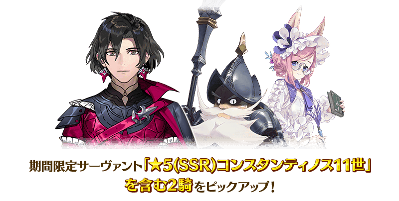 「幕間の物語キャンペーン 第19弾」の開催を記念して、期間限定サーヴァント「★5(SSR)コンスタンティノス11世」を含む2騎をピックアップ!