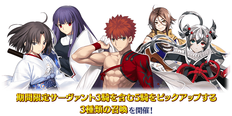 ※下記の期間限定サーヴァントは、ピックアップ対象となっている召喚からのみ排出されます。また、ピックアップ期間終了後、ストーリー召喚には追加されません。