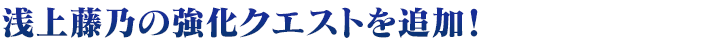 ※「★4(SR)浅上藤乃」は、1つ目の強化クエストである「強化クエスト 浅上藤乃」をクリアしておく必要があります。 ※サーヴァント強化クエストにはアドベンチャーパートはありませんのでご注意ください。 ※対象サーヴァントを所持していない場合、クエストは出現しません。 ※クエストに開催期限はありません。