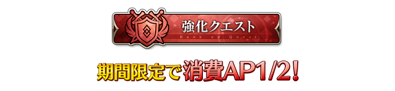 下記の期間中、期間限定でイベントボーナスサーヴァントの「強化クエスト」の消費APが1/2になります!(バトルにおいて撤退した場合でも、同様の消費量になります)