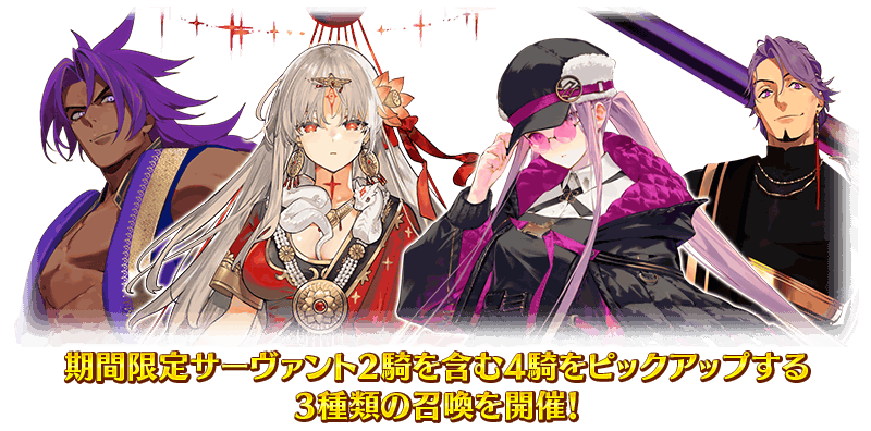 ※下記の期間限定サーヴァントは、ピックアップ対象となっている召喚からのみ排出されます。また、ピックアップ期間終了後、ストーリー召喚には追加されません。
