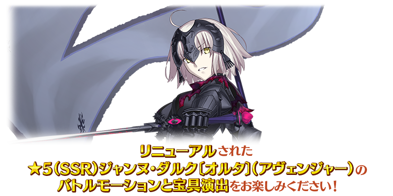 2024年3月23日(土) 18:00より、「★5(SSR)ジャンヌ・ダルク〔オルタ〕(アヴェンジャー)」の宝具演出時のBGMが追加されます。