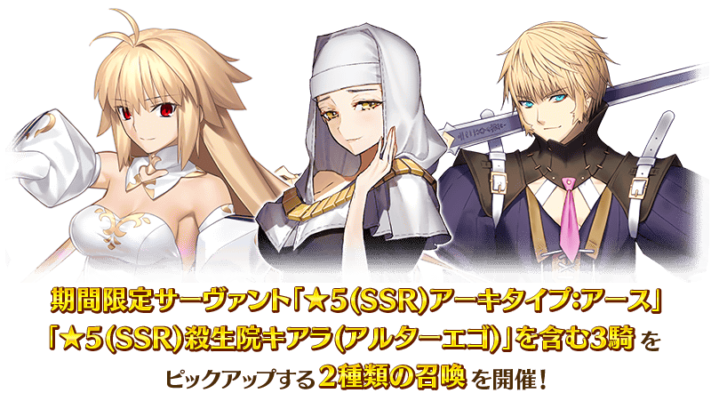 期間限定「奏章Ⅲ 新霊長後継戦 アーキタイプ・インセプション」(後編)の開幕を記念して、期間限定サーヴァント2騎を含む3騎をピックアップする2種類の召喚を開催いたします!