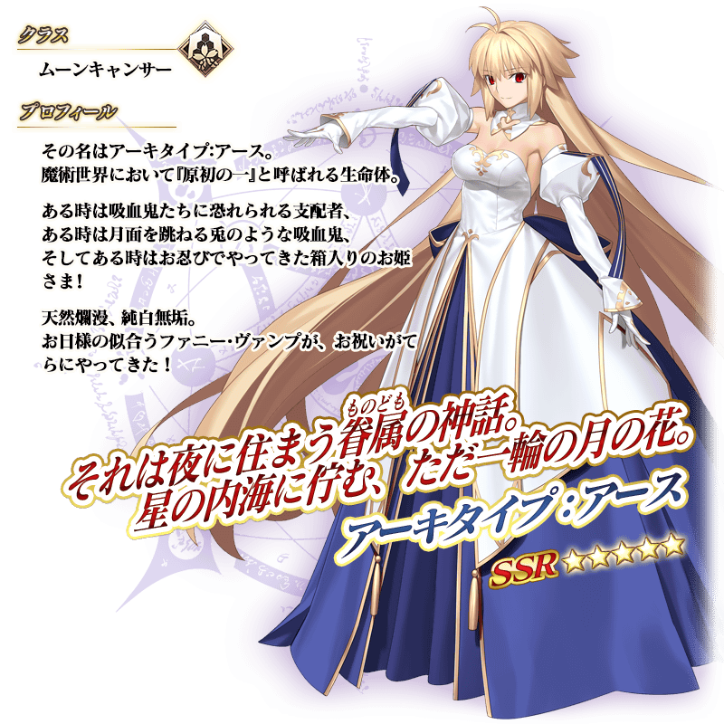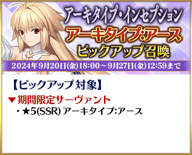 本召喚では、各召喚にてピックアップされている★5(SSR)サーヴァントのみが「確定召喚」による召喚の対象となります。