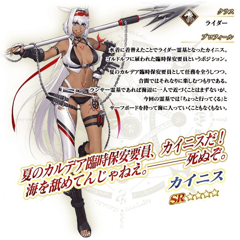 ※上記の「★4(SR)カイニス(ライダー)」のイラストとセイントグラフは霊基再臨第2段階のものです。