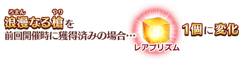 ※すでにレアプリズムと交換していた場合は、無料開放条件を満たした時点で「交換に使用した同数のレアプリズム」がプレゼントボックスに返還されます。 ※「スカサハ体験クエスト」の交換無料化に期限はありません。