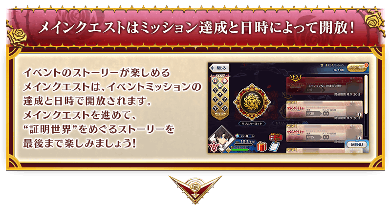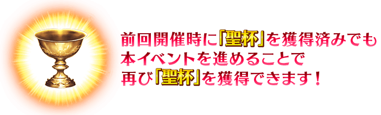 ※前回開催時の期間限定Fate/Grand Order Arcade×Fate/Grand Orderコラボレーションイベント「螺旋証明世界 リリムハーロット ~喝采なき薔薇~」にて「聖杯」を獲得済みの場合でも、本イベントを進めることで再度「聖杯」を獲得することができます。