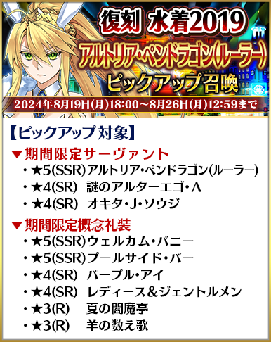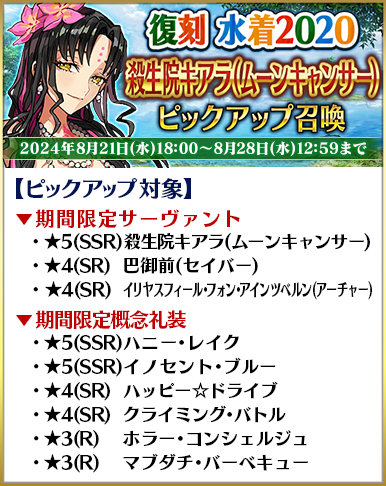 ◆「復刻 水着2018~2020ピックアップ召喚」期間◆
