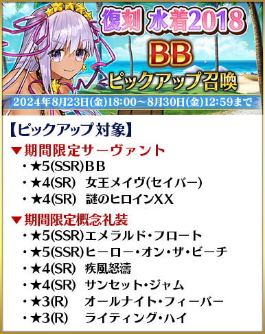 ■「BBプレゼンツ☆セレブサマー・エクスペリエンス! 謎の代行者C.I.E.Lピックアップ召喚」詳細情報