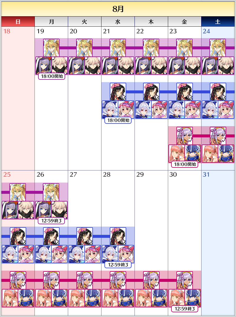 ◆「復刻 水着2018~2020ピックアップ召喚」スケジュール◆