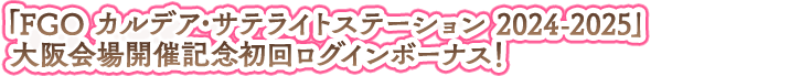 下記の期間中、「FGO カルデア・サテライトステーション 2024-2025」大阪会場開催を記念して、初回ログイン時に聖晶石10個をプレゼントいたします!